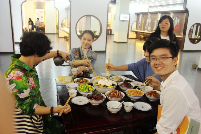 看到这一桌菜,有没有一种油然而生的熟悉感,绍兴“十碗头”是每一个绍兴人家逢年过节时饭桌上不可缺少的传统菜单,然而眼前的这一桌可不一般,因为它们能够保持二十年这样的活色生香,这就是我校“快乐星期二”学生社团的“快乐导师”们在浙江农业商贸职业学院“绍兴菜博物馆”体验到的。