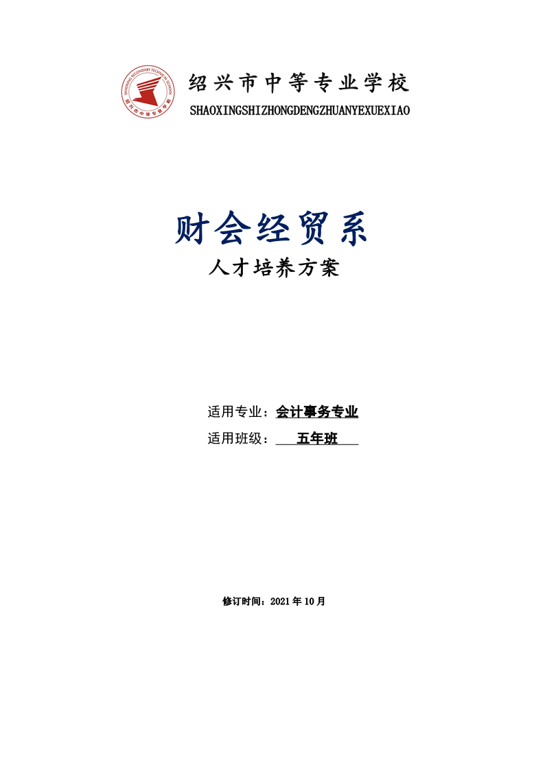 财会经贸系会计事务(五年班)专业人才培养方案