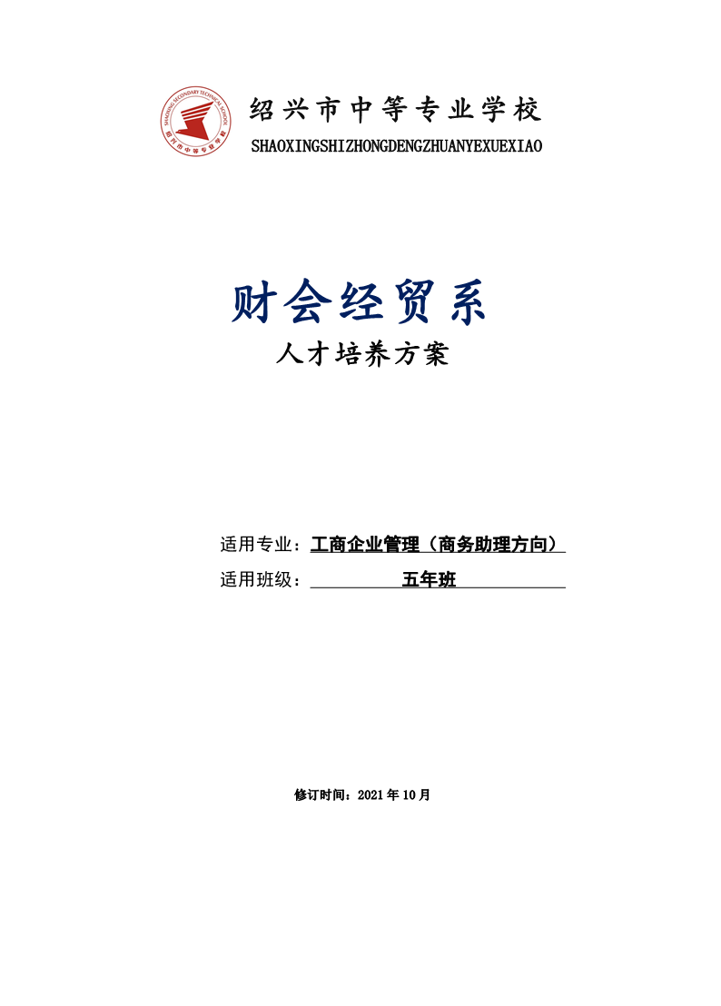 财会经贸系工商企业管理(商务助理方向)专业人才培养方案