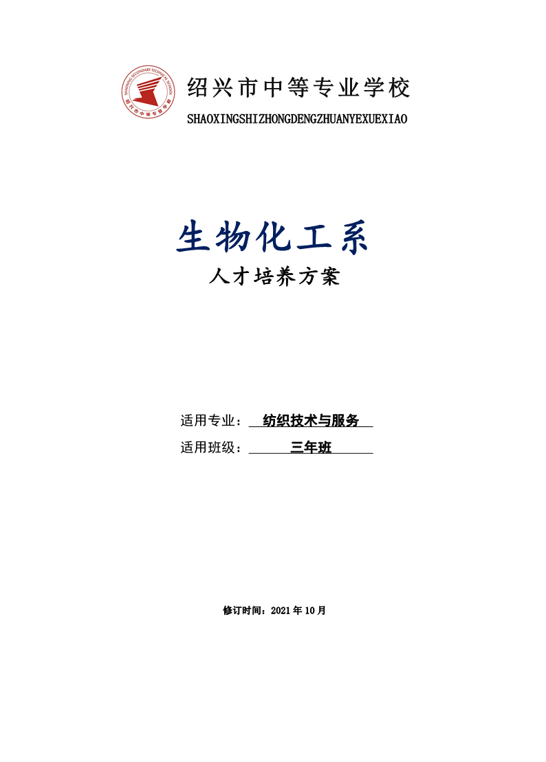 生物化工系纺织技术与服务专业人才培养方案
