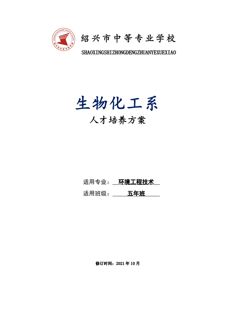 生物化工系环境工程技术专业人才培养方案