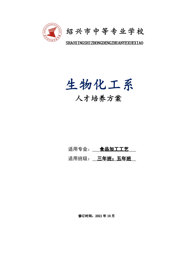 生物化工系食品加工工艺专业人才培养方案