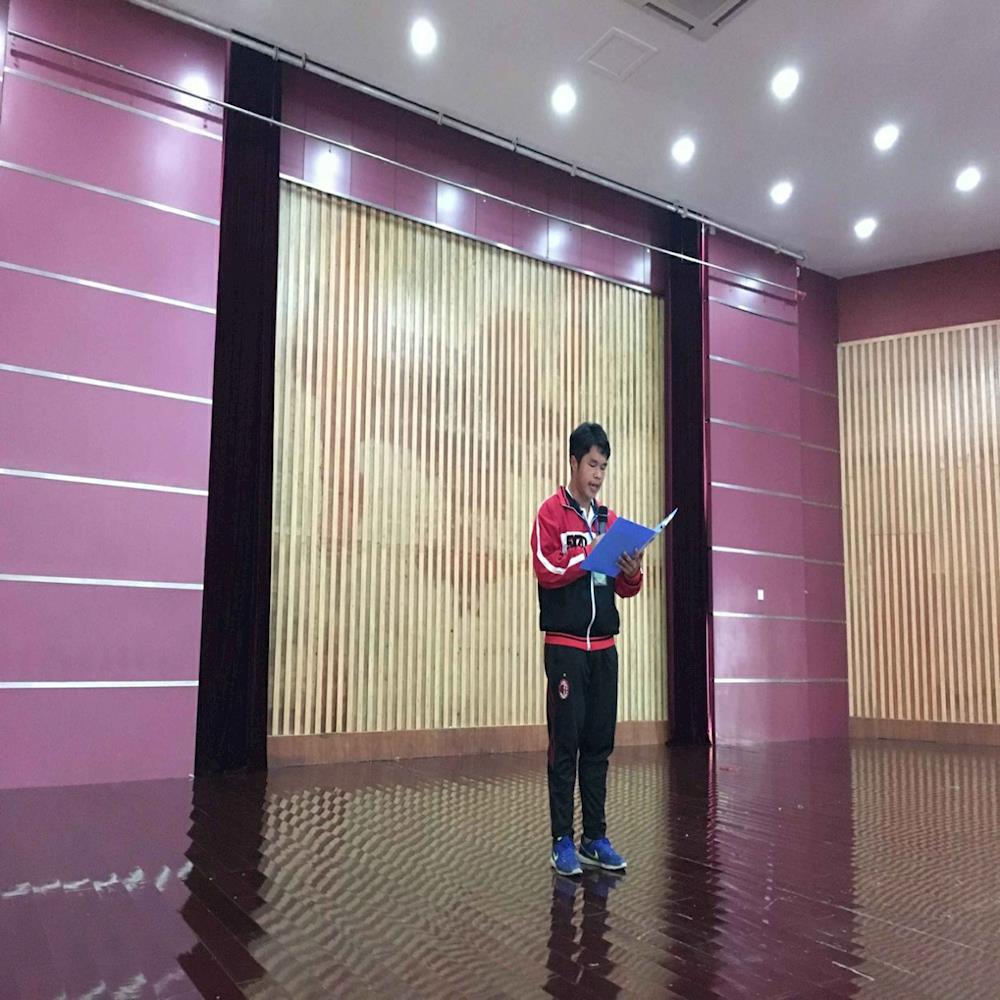 5月25日上午,绍兴中专技能文化节经典诗歌朗诵比赛在学校报告厅举行,各系的比赛选手汇聚在此。