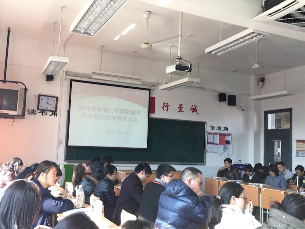 2017211日,机械电气系在516教室召开了2016学年第二学期系期初全体教师大会,由系主任杭建老师主持。