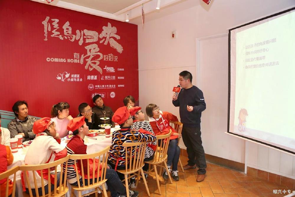 你我身边,有这么一群孩子,他们虽和父母生活在一起,却只有逢年过节才跟着爸妈一同返乡,仿佛是一只小候鸟,在不同地方迁徙、奔波着。随着春运的开始,在绍兴的“小候鸟”们也要飞回家了。 2 月 4 日下午,绍兴颐高肯德基餐厅内是一派温暖温馨的气息,十一位“ 小候鸟”们在肯德基餐厅内与家人一起听故事、玩游戏、看表演、做汉堡,提前过了一次难得的团圆年,绍兴中专机械电气系的志愿者们参加了此次活动。