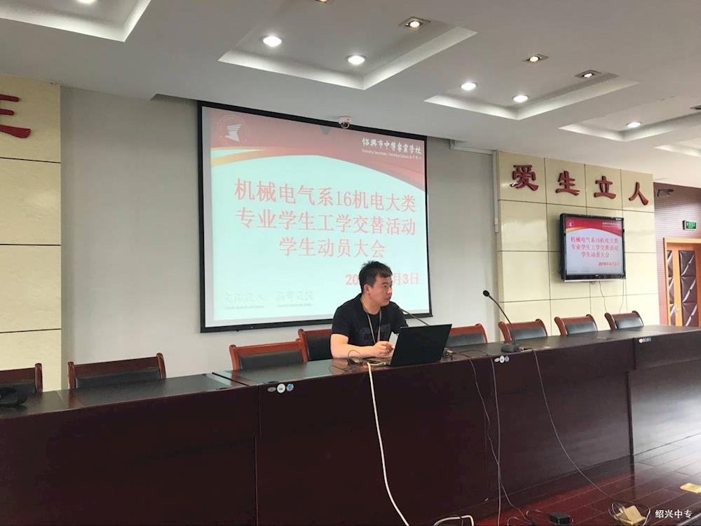 近日 ,机械电气系在行政楼 401 召开 了16机电大类专业学生工学交替活动动员大会,15、16级参加下企业的学生及班主任参加了此次会议,系主任杭建卫老师主持会议。