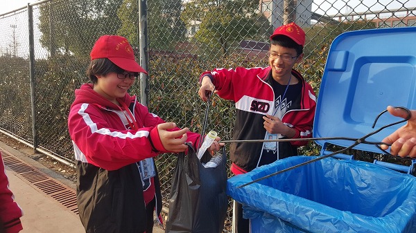 再后来,服务时间到了,辛苦了那么久,可以歇一歇了。可是,他们却停不下来了!金煜洋、何成宇钻到矮树丛里,捡出了一些早已生根的可乐瓶、塑料袋。