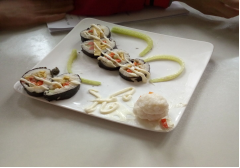 当材料一样一样的发下来时,有的同学已迫不及待的将手伸向食材,以此满足自己饿着的肚子。寿司的制作过程看似简单,但实际操作时却是状况百出,比如:食材放得太多导致帘子卷不起来;切寿司条时一把一把的散下来;又或者切的大小不一,外观丑陋。但同学们却不管这些,仍是一个一个的往嘴里放,吃得很香。