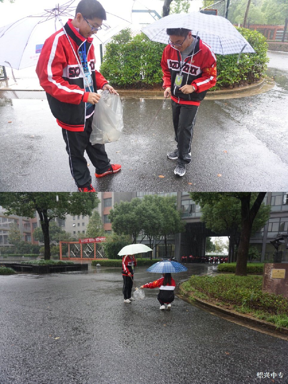 清洁环境,爱我校园。这周是17造价5年班劳动服务周。周日的下午天还下着雨,在班主任王力斌老师的带领下,同学们都早早的开始打扫校园的卫生,手上拿着扫把、垃圾袋、钳子,仔细地寻找,由于雨天的路面很湿,打扫难度相对增大,尽管任务繁重却没有一个人退却,班级干部都作出了表率作用,每一位同学都在尽自己最大的努力去清扫。每一个角落都不放过,看到有垃圾,就弯腰将其拾起。转眼间,操场上,小道上,草坪深处已不见塑料袋、瓜皮纸屑的踪影。