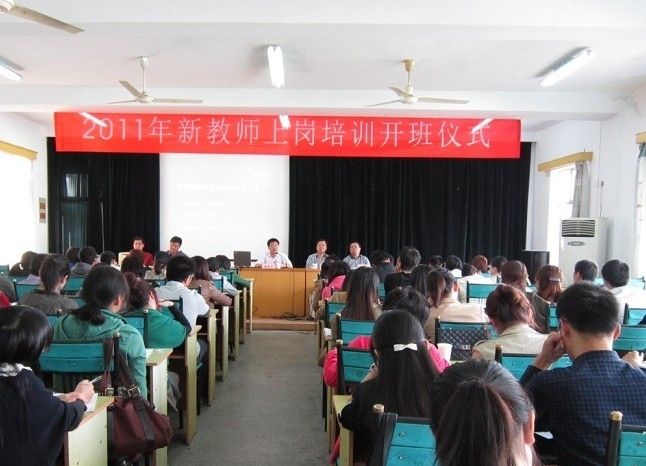 2011 年10月19日下午,2011市属新教师上岗培训开班仪式在绍兴市教育教学研究院举行,市教育局钱伟平副局长、政治处陈培其处长、师范处马神光处长、市教育教学研究院沈江峰院长、吕华荣副院长出席了本次开班仪式。我校李琳、章云娟、吴丹萍、倪彬、张兴苗5名新教师及其它市属学校的54名新教师参加了此次开班仪式。