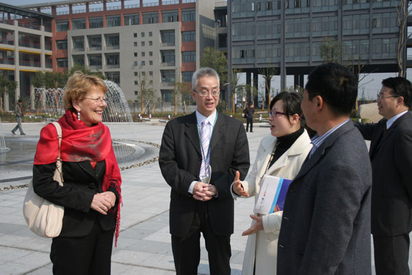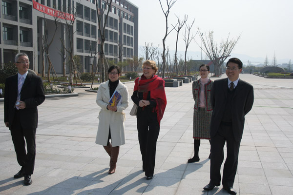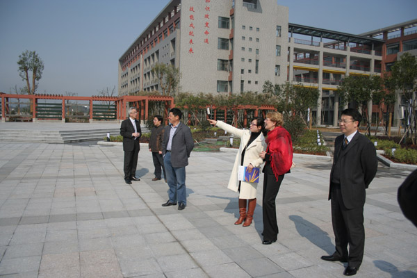 绍兴市教育局陈纪钢副局长和谢菲尔德学院院长麦克 唐娜 女士、国际发展部主 任许仲文 先生在我校校领导陪同下首先参观了我校位于城南的新校,一流的教育设施、暂新的校园环境令英国嘉宾大为赞赏;多样化的专业设置,严格的教学管理模式又激发了英国代表参观了解的浓厚兴趣。