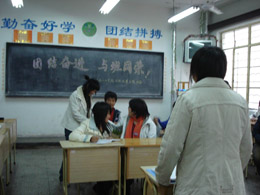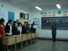 2008124日下午,为了促进班级的团结,增进同学之间的友谊,激励学生奋发向上的斗志,我班举行的“团结奋进,与班同荣”的全校观摩主题班会。
