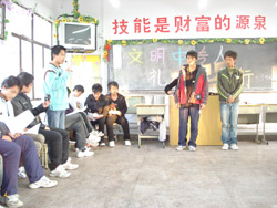 通过此次班会,同学们深刻地认识到文明礼仪是学习、生活的根基,是我们健康成长的臂膀。没有了文明,就没有了基本的道德底线。作为中专学子,我们应该从身边点滴小事做起,学好文化,学精技能,学会做人,相信在知识技能武装下、文明礼仪浸润下的同学们,肯定能在今后的工作、生活中脱颖而出,一步步走向理想的彼岸。(杨雅琴   供稿)