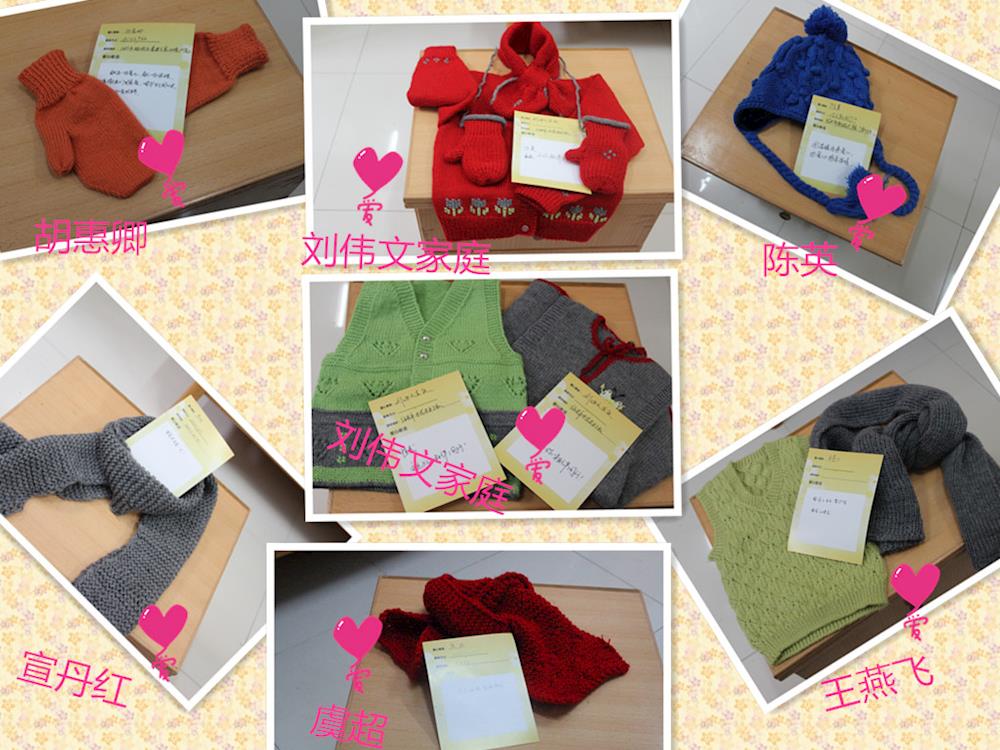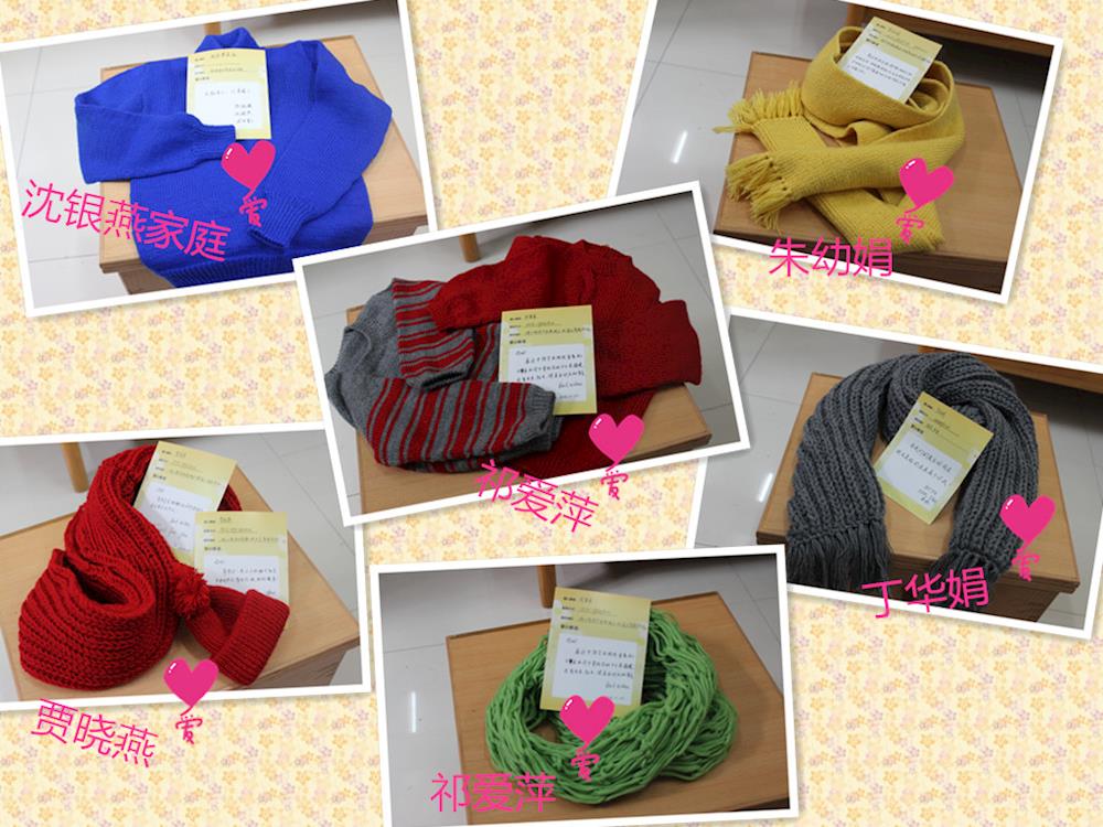 多方关心,汇聚温暖!活动过程中,我们的女教职工不但自己身体力行,更动员自己的亲属参加,扩大了此次爱心编织活动的范围,增强了此次爱心活动的影响。此次活动一共发放毛线20余斤,共收回各色花样毛衣裤15件,围巾18条,帽子3顶,手套3副。