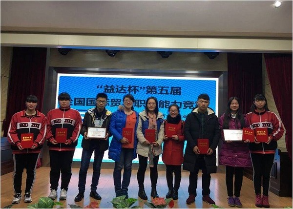 2015年12月20日,“益达杯”第五届全国国际贸易职业能力竞赛在上海举行。此次大赛由中国对外贸易经济合作企业协会和中国职业技术教育学会商科专业委员会共同主办,上海市商业学校承办。经过任李静、陈佳佳、李佳琴三位指导老师的用心辅导,我校两只参赛队伍表现出色,成绩喜人,分别荣获口业务操作单项技能一等奖、综合技能二等奖和三等奖。