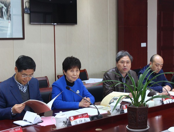 绍兴市人大教育科学文化卫生工作委员会主任陈坤木(左三)主持会议