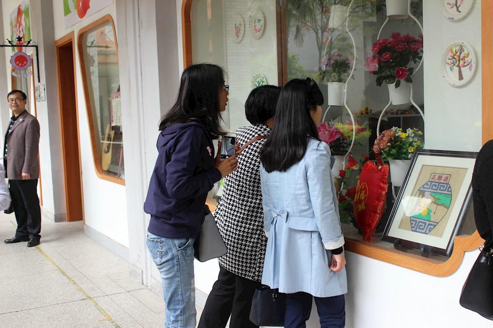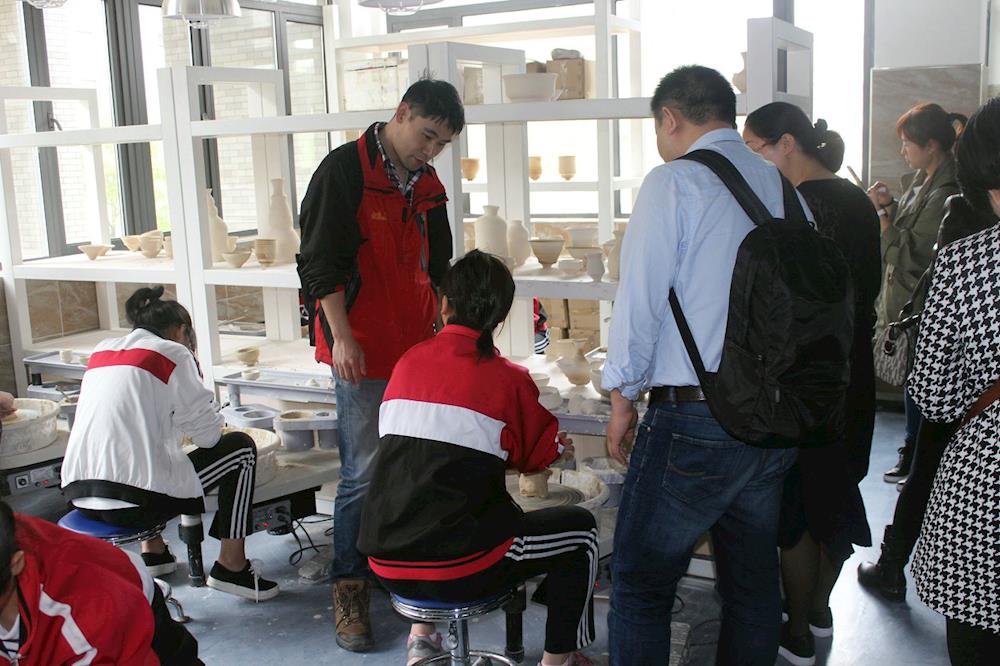在陶吧观看学生制作陶艺作品