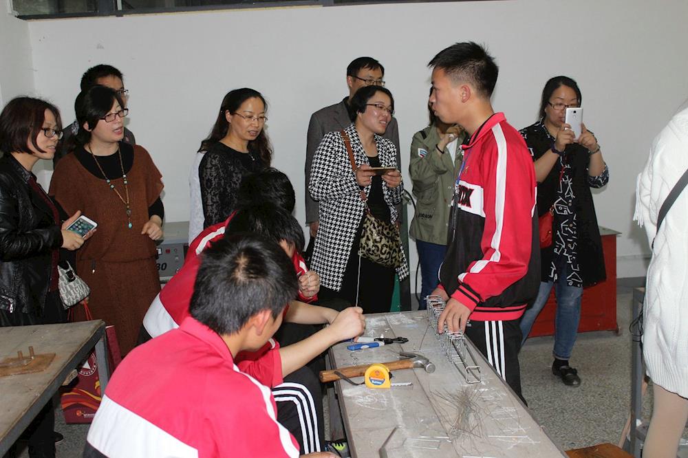 观看建工系学生制作扎筋模型
