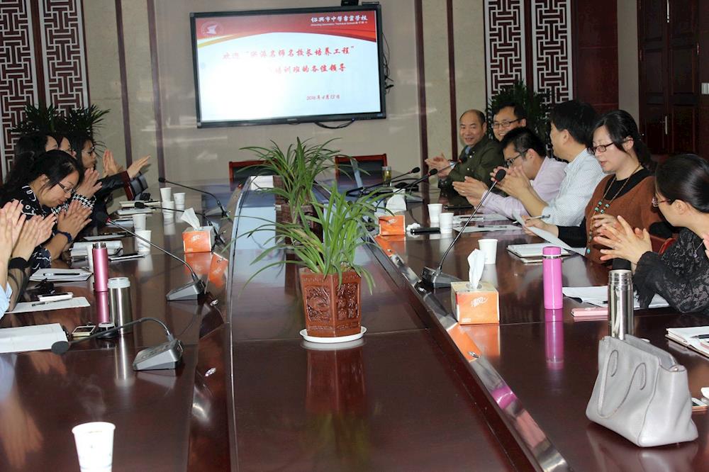 邵国成校长(左一)为名师作讲座