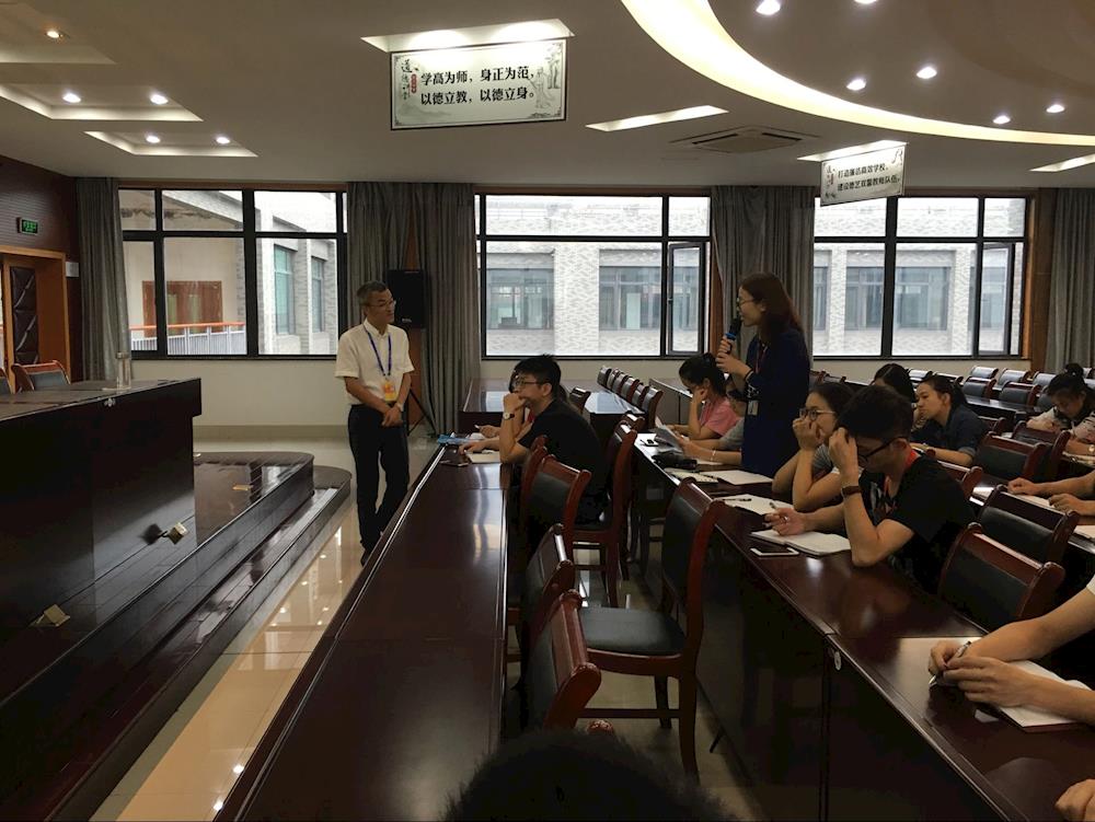 接下来,顾校长结合我校学生和教师的实际情况,借用习近平总书记提出的好教师的四有标准,解读了做一个幸福教师必备的素养。最后,顾校长向教师们推荐了两本书——霍姆斯所著的《教师的幸福感》、帕克帕尔默所著的《教学勇气——漫步教师的心灵》,还推荐了一个有关班主任工作的微信公众号,希望以此与青年教师们共同学习,共同进步。