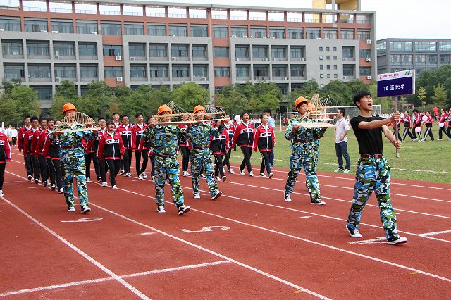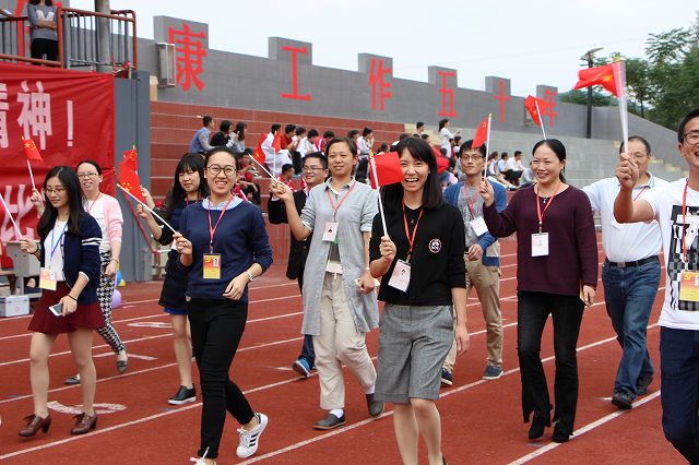 开幕式在欢快的运动员进行曲中拉开了帷幕。学校护旗队首先步入会场,护旗手高举国旗和本届运动会会旗,迈着正步、精神抖擞地经过主席台。紧接着,全校五个系共76个班级方阵和每个系的教职工方阵也身着统一的服装,迈着整齐的步伐,喊着响亮的口号步入会场,依次经过主席台,接受领导检阅。