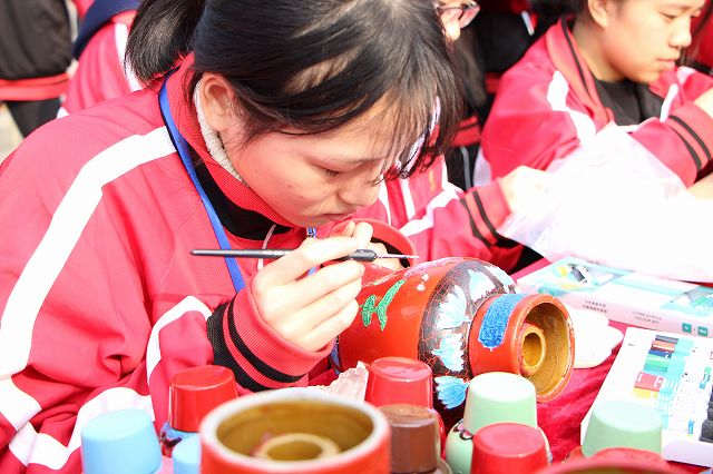黄酒展台的同学正在进行创意彩绘