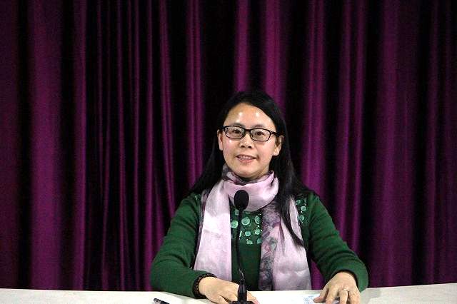 教务处傅卫莉老师正在做教学展示活动前的动员