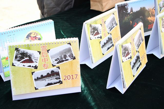 同学们自己设计制作的台历等待销售