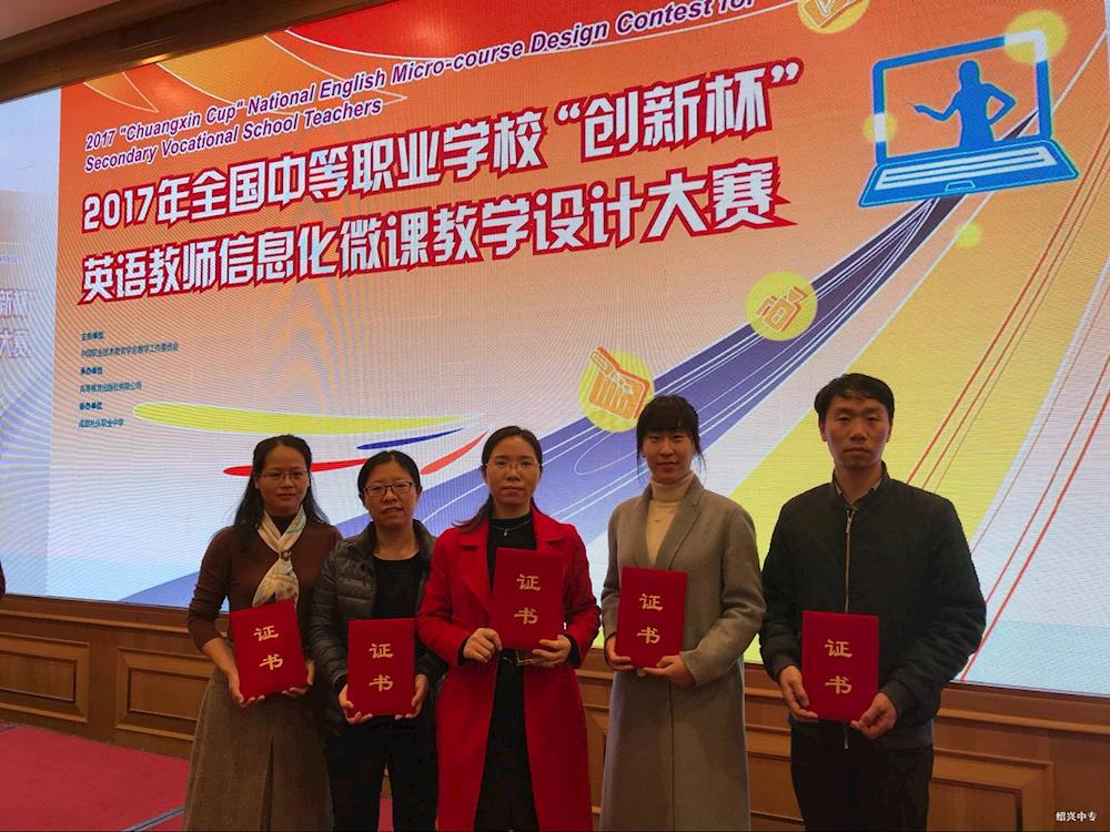 2017 年 11 月 27 、 28 日,由中国职业技术教育学会教学工作委员会主办、高等教育出版社有限公司承办、成都礼仪职业中学协办的 2017 年全国中等职业学校“创新杯”英语教师信息化教学设计大赛决赛在四川成都举行,来自全国各地的一百多位选手和各地区观摩教师齐聚天府之国,分享与交流中职英语教学的经验与设想。绍兴地区中职学校英语教师积极参加了此次比赛。