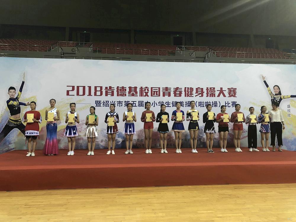 7月4日, 2018肯德基校园青春健身操大赛暨绍兴市第五届中小学生健美操(啦啦操)比赛在绍兴镜湖奥体中心举行,绍兴中专健美操队在基础落后、技术困难的前提下,通过一个学期的认真训练,展示出中专自信,荣获本次比赛两个项目一等奖(第2名)。